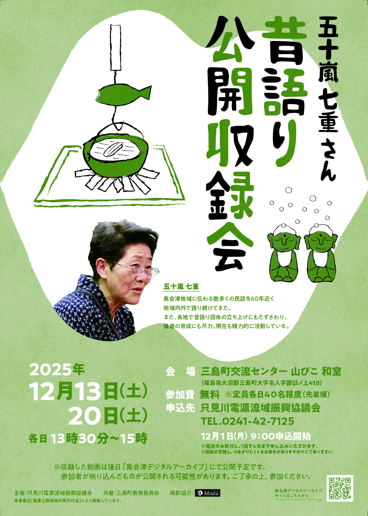 収録した動画は、後日「奥会津デジタルアーカイブ」にて公開予定です。公開映像に参加者が映り込む可能性がありますので、ご了承の上、参加ください。