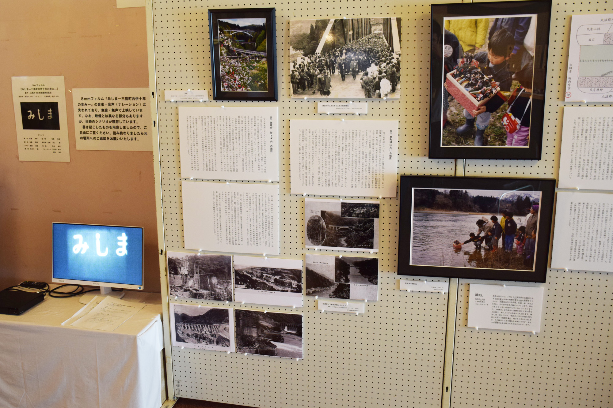 ミニ展示ではありますが、筏流しや管流し、川沿いにある鶴の湯、高清水の雛流し、宮下ダム(宮下水力発電所)建設などの写真パネル・テキストパネルのほか、昭和42年(1967)に完成した当時の三島町を撮影した8mm映画(約54分)もご覧いただけます。