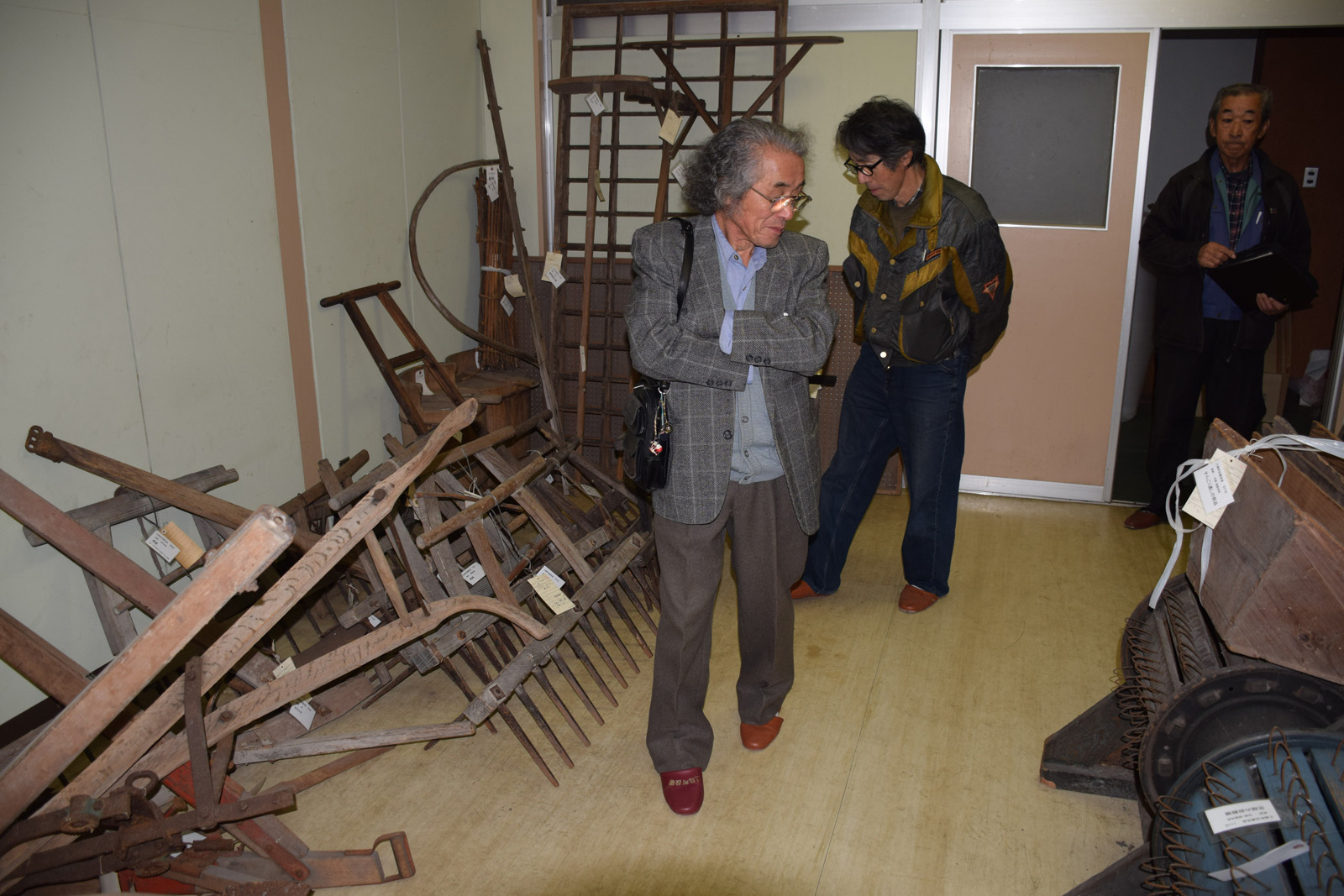また、指定文化財ではないですが、旧中学校に収蔵されている遺跡出土品や民具などの保管状況も確認しました。