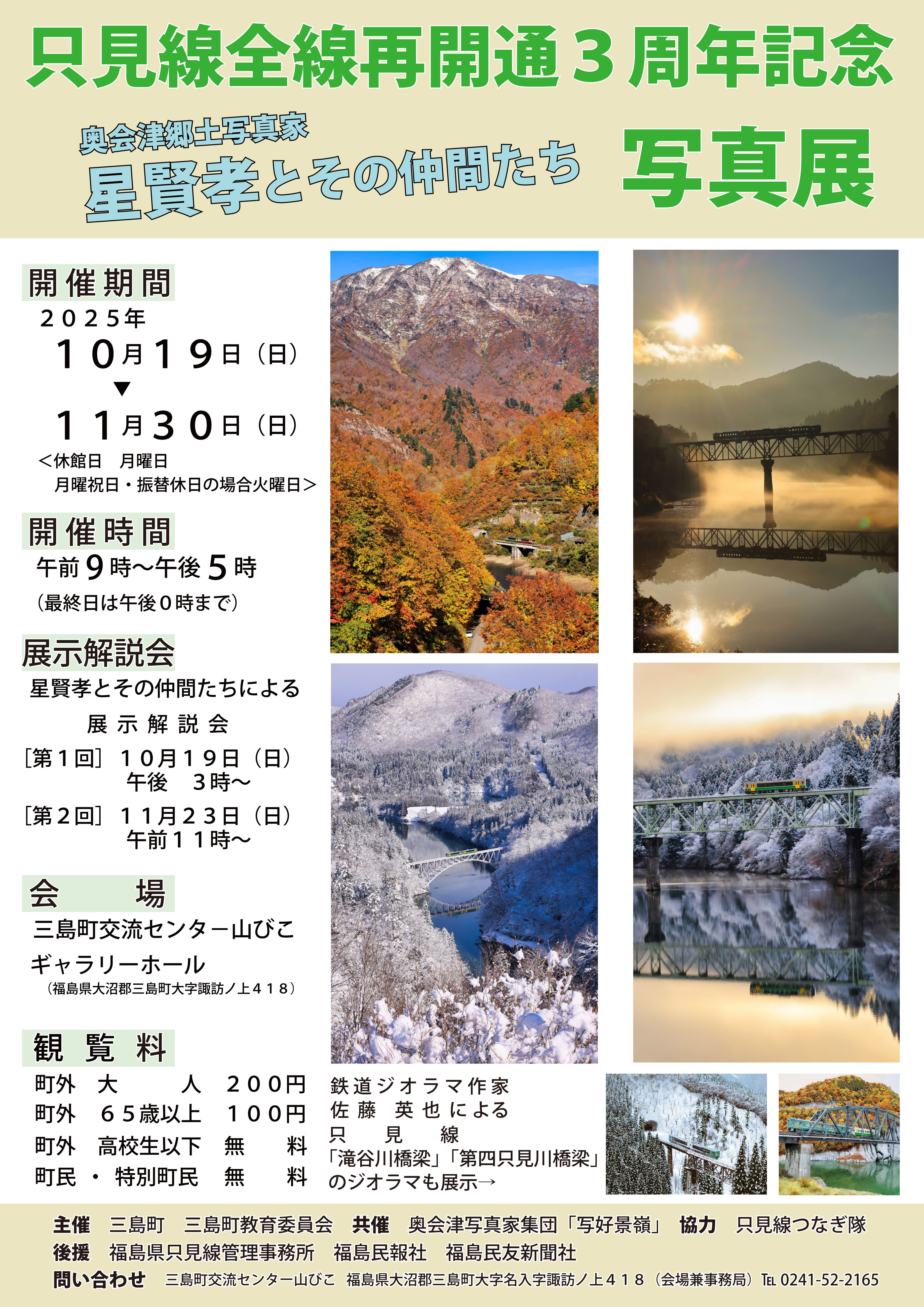 只見線全線再開通3周年を記念して、奥会津郷土写真家・星賢孝氏とその仲間たちが撮影した数十枚の写真を展示する企画展を開催します。