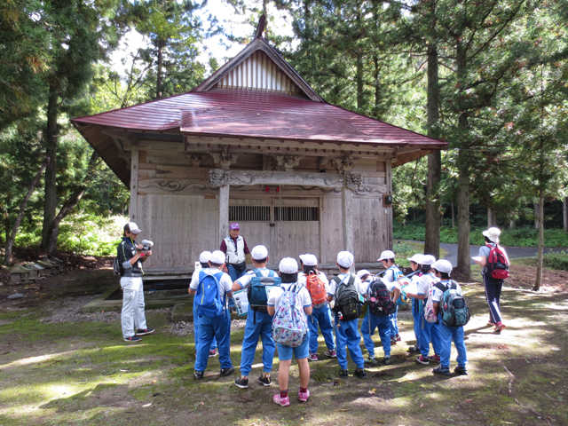 三島小学校の3年生が町の各地区を学習する「地区探検」、今月17日は大谷地区を探検してきました。前日は大きな台風で強い風雨でしたが、17日はまさに「台風一過」な快晴でした。